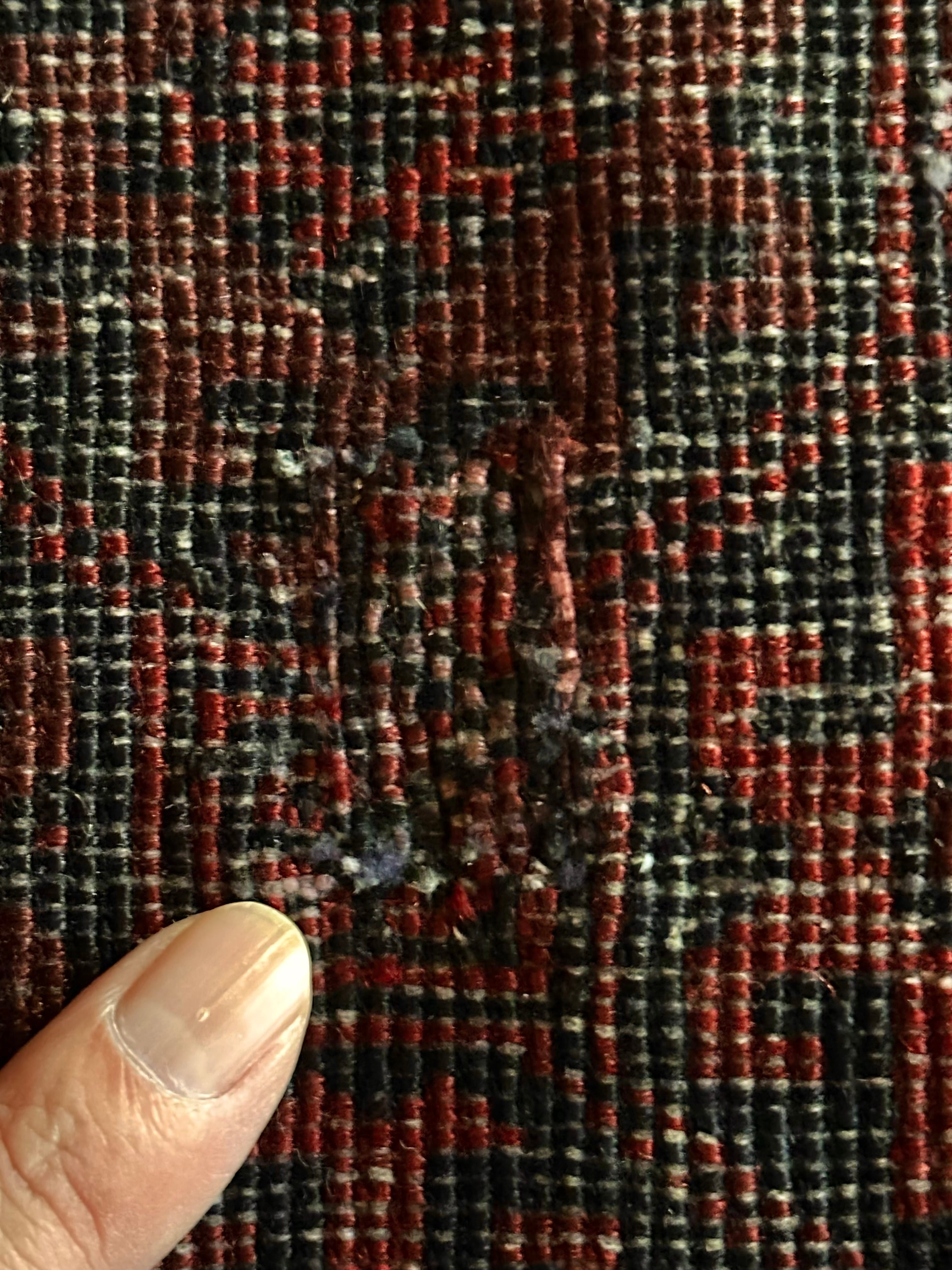 経年としては50年となりヴィンテージラグらしい雰囲気からしてそれなりの使用感があります。また目立つダメージはありませんが、長年受け継がれてきた証としての修繕されたリペア箇所がありますので写真にてご確認ください。