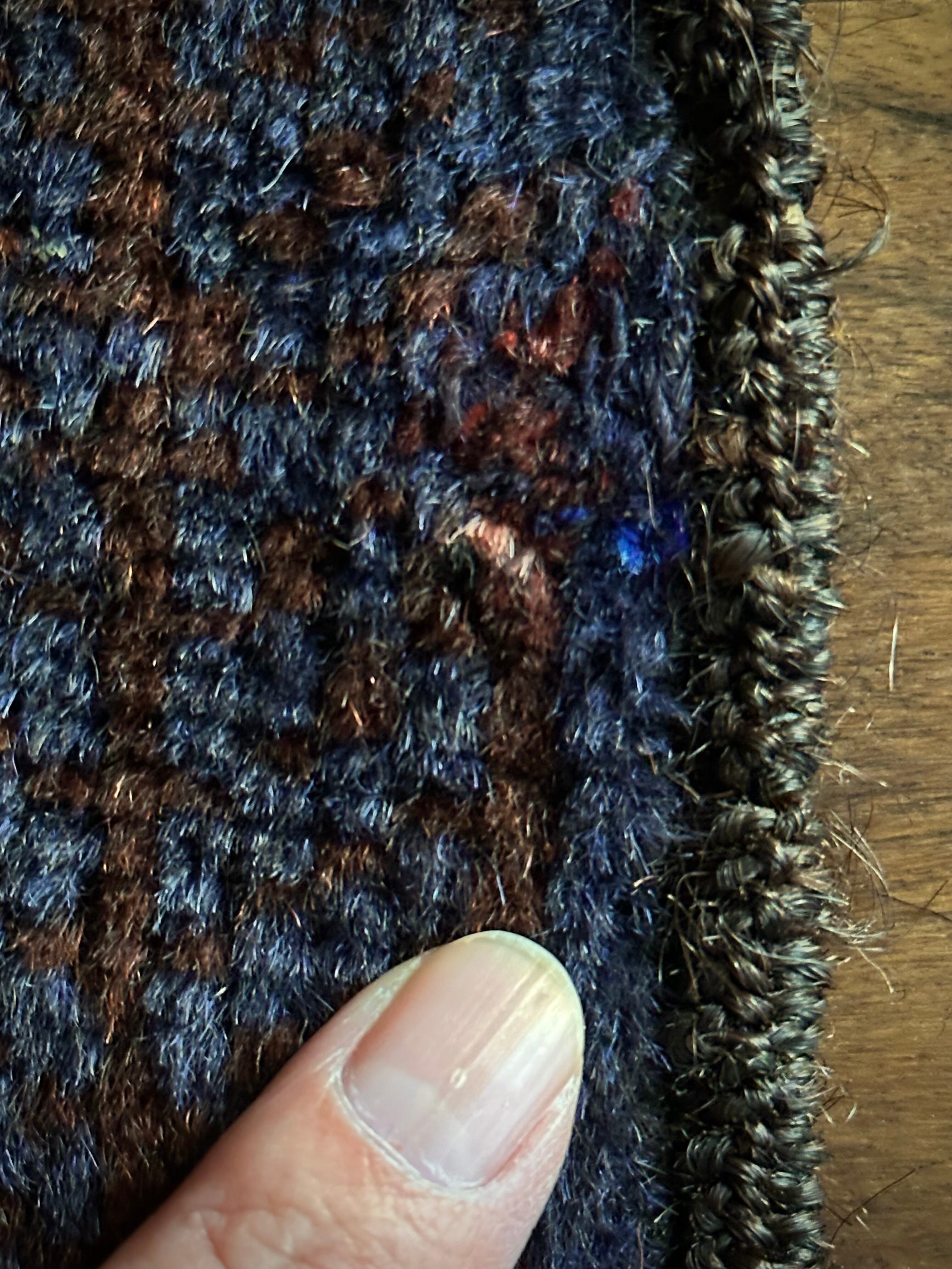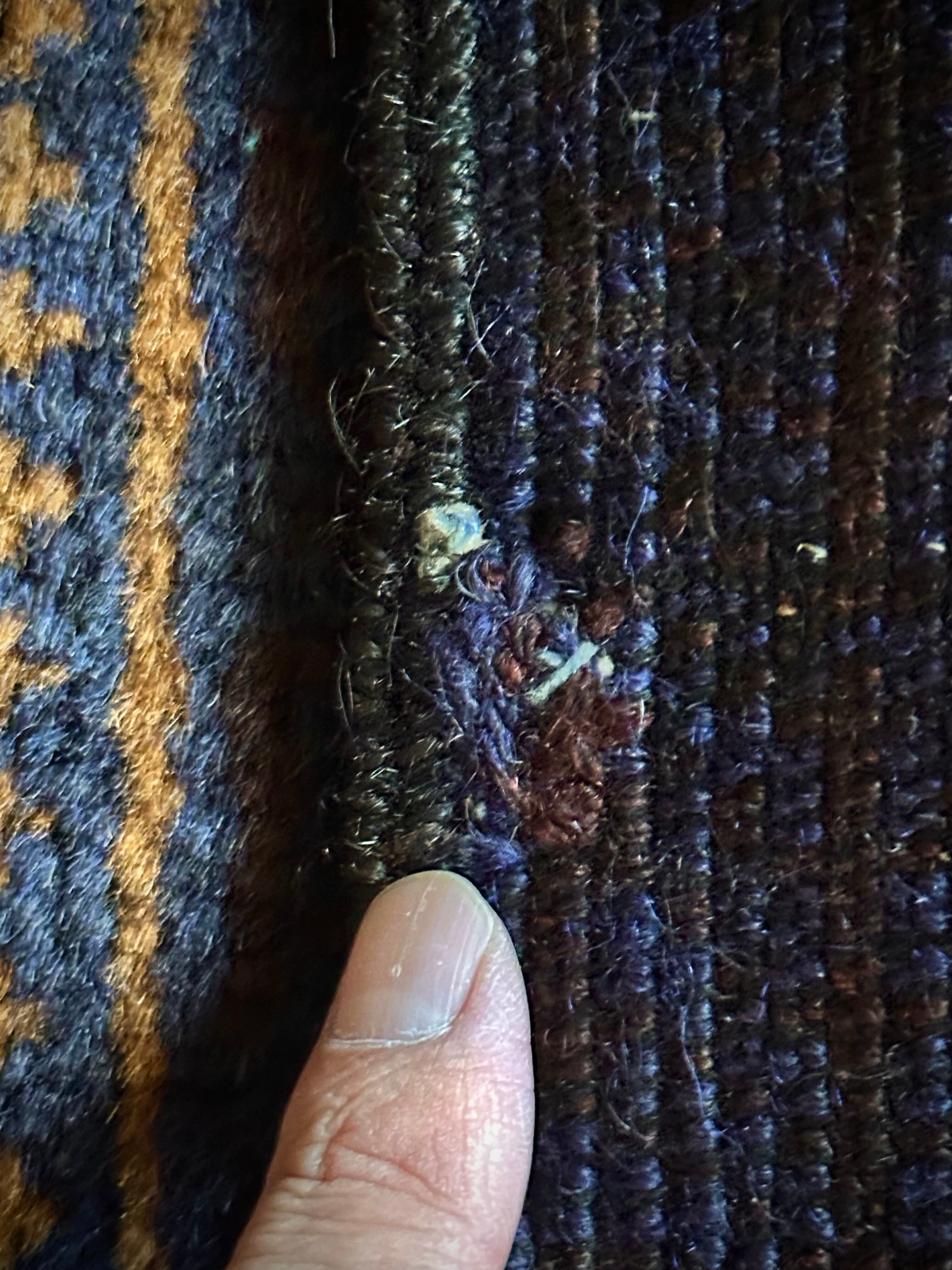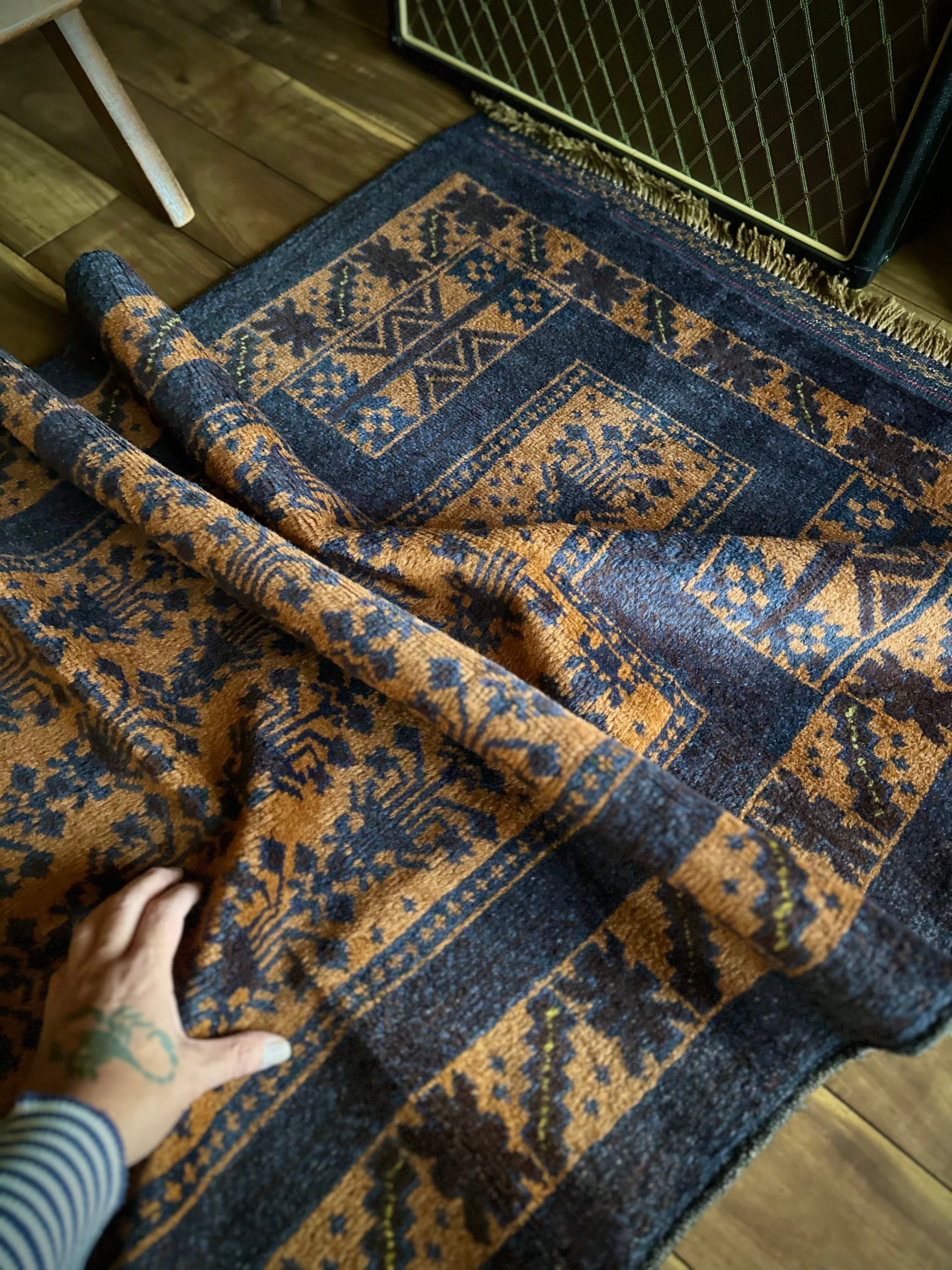 最後にラグそのものに関しては羊毛特有の匂いがあり、採寸は中央付近で計測していますが、手織りならではの歪みによる誤差や水洗いクリーニングによる縮み、また草木染めによる経年劣化の色ムラなどがありますが、それもまたヴィンテージラグの魅力かとご理解ください。