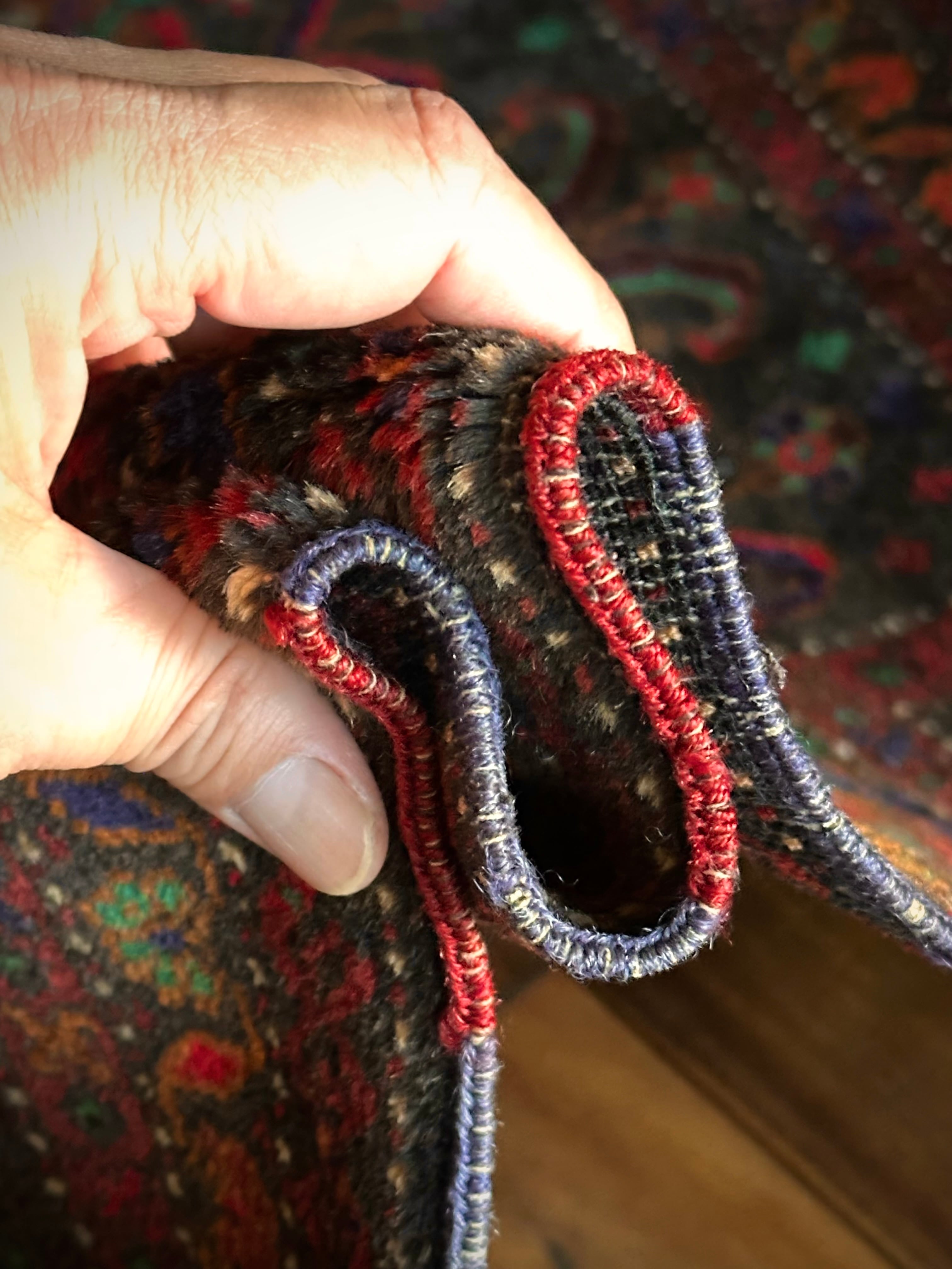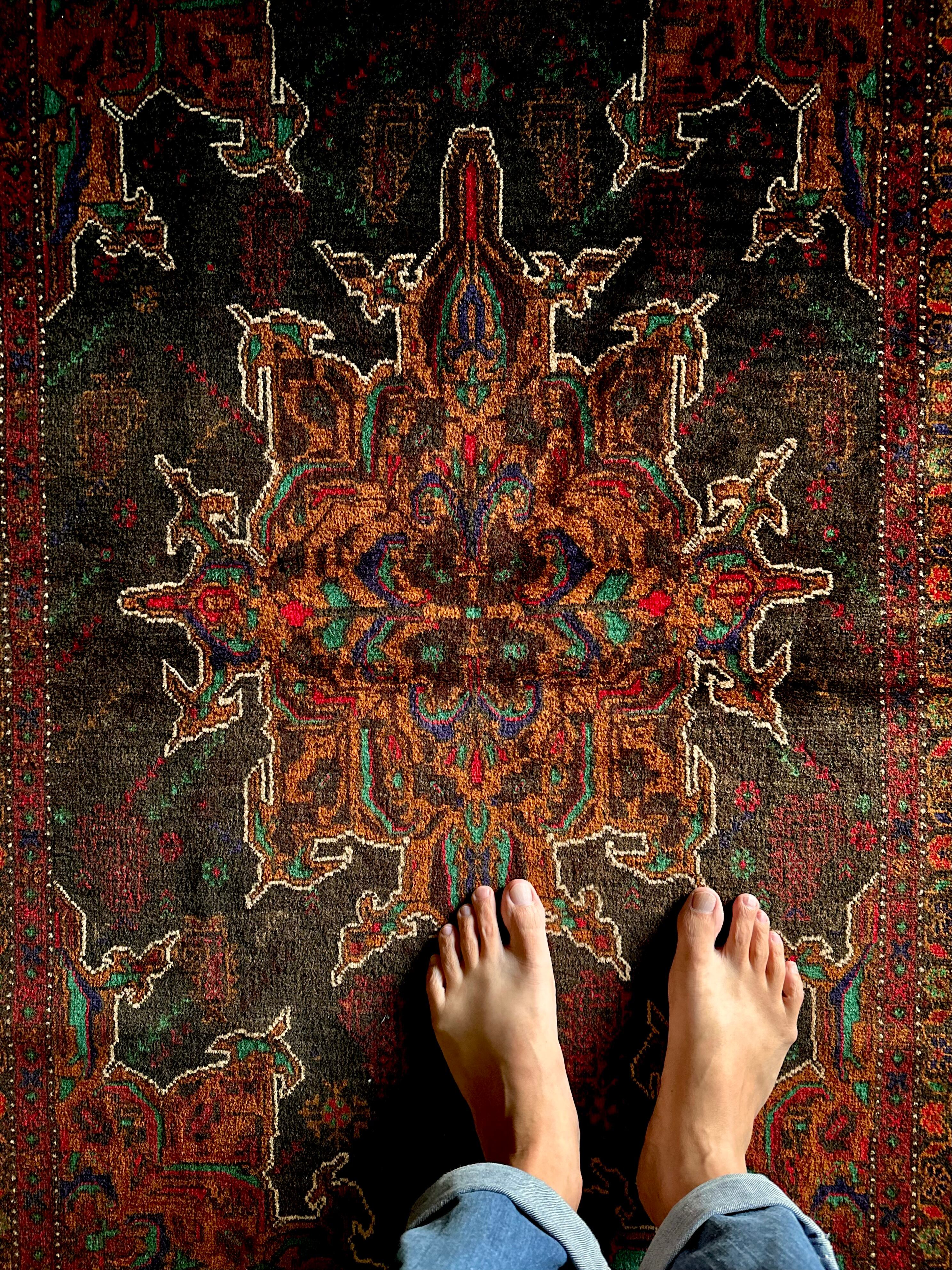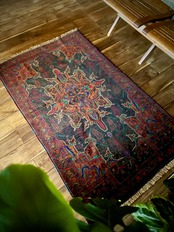 最後にラグそのものに関しては羊毛特有の匂いがあり、採寸は中央付近で計測していますが、手織りならではの歪みによる誤差や水洗いクリーニングによる縮み、また草木染めによる経年劣化の色ムラなどがありますが、それもまたヴィンテージラグの魅力かとご理解ください。