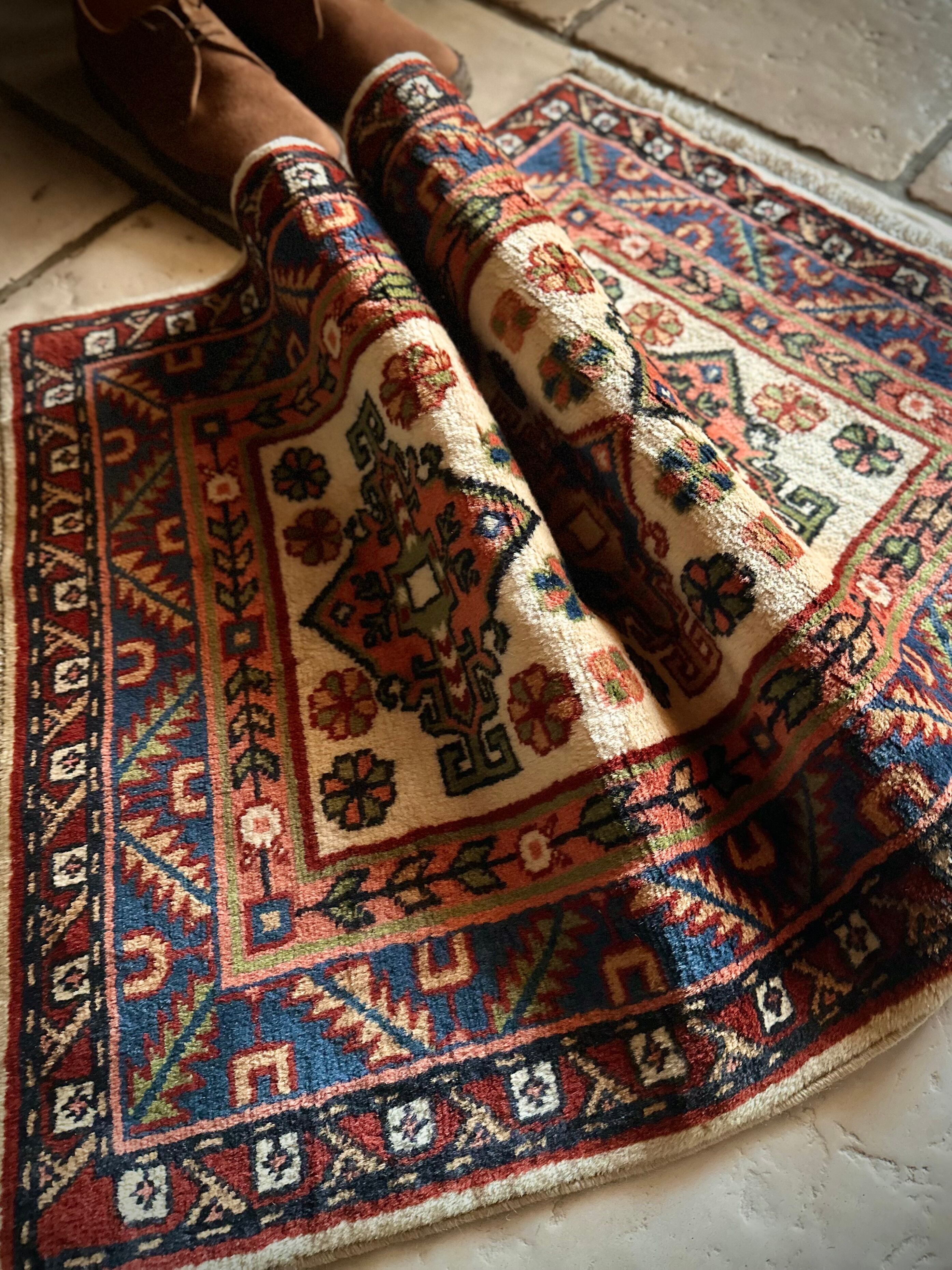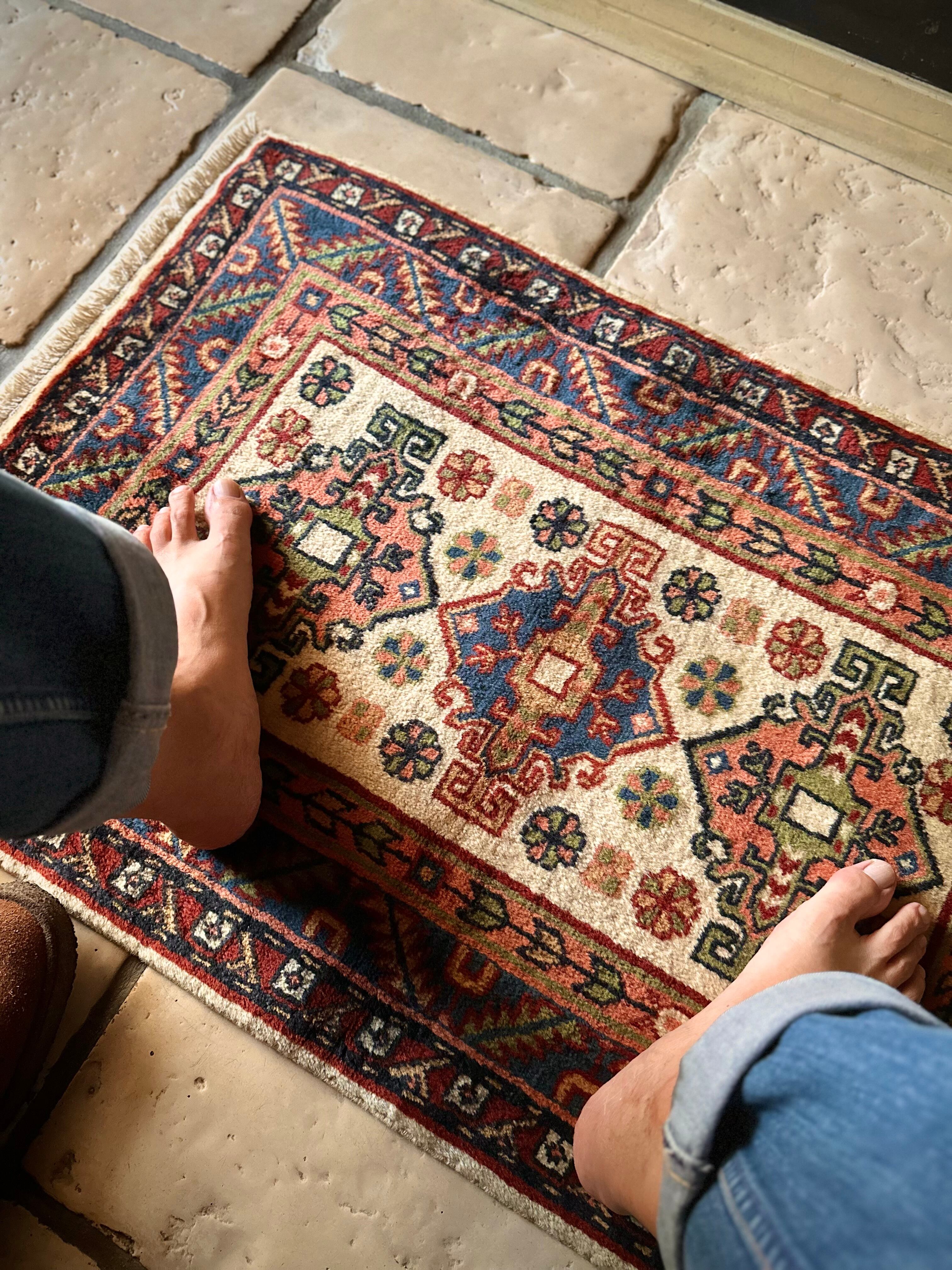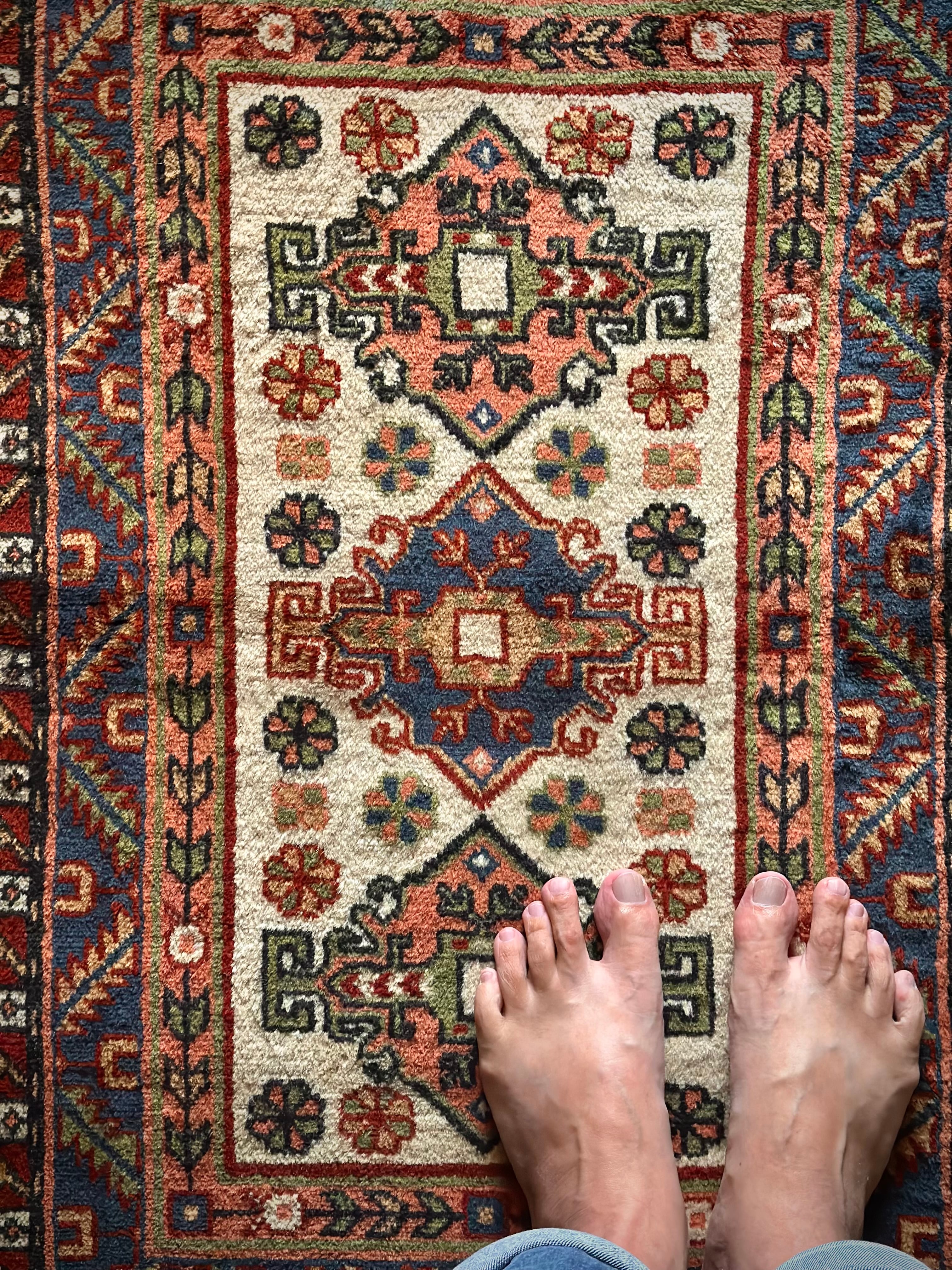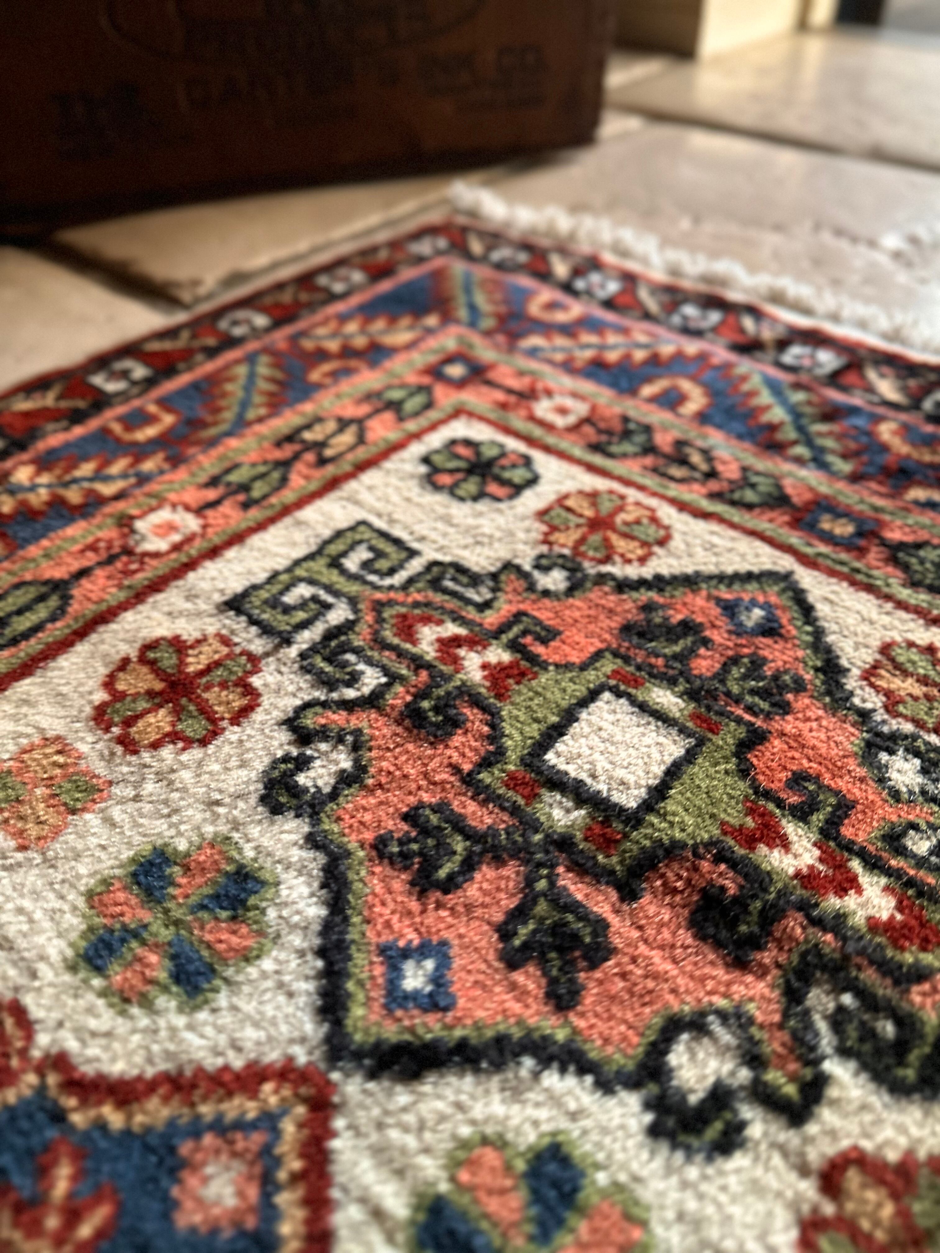 最後にラグそのものに関しては羊毛特有の匂いがあり、採寸は中央付近で計測していますが、手織りならではの歪みによる誤差や水洗いクリーニングによる縮み、また草木染めによる経年劣化の色ムラなどがありますが、それもまたヴィンテージラグの魅力かとご理解ください。