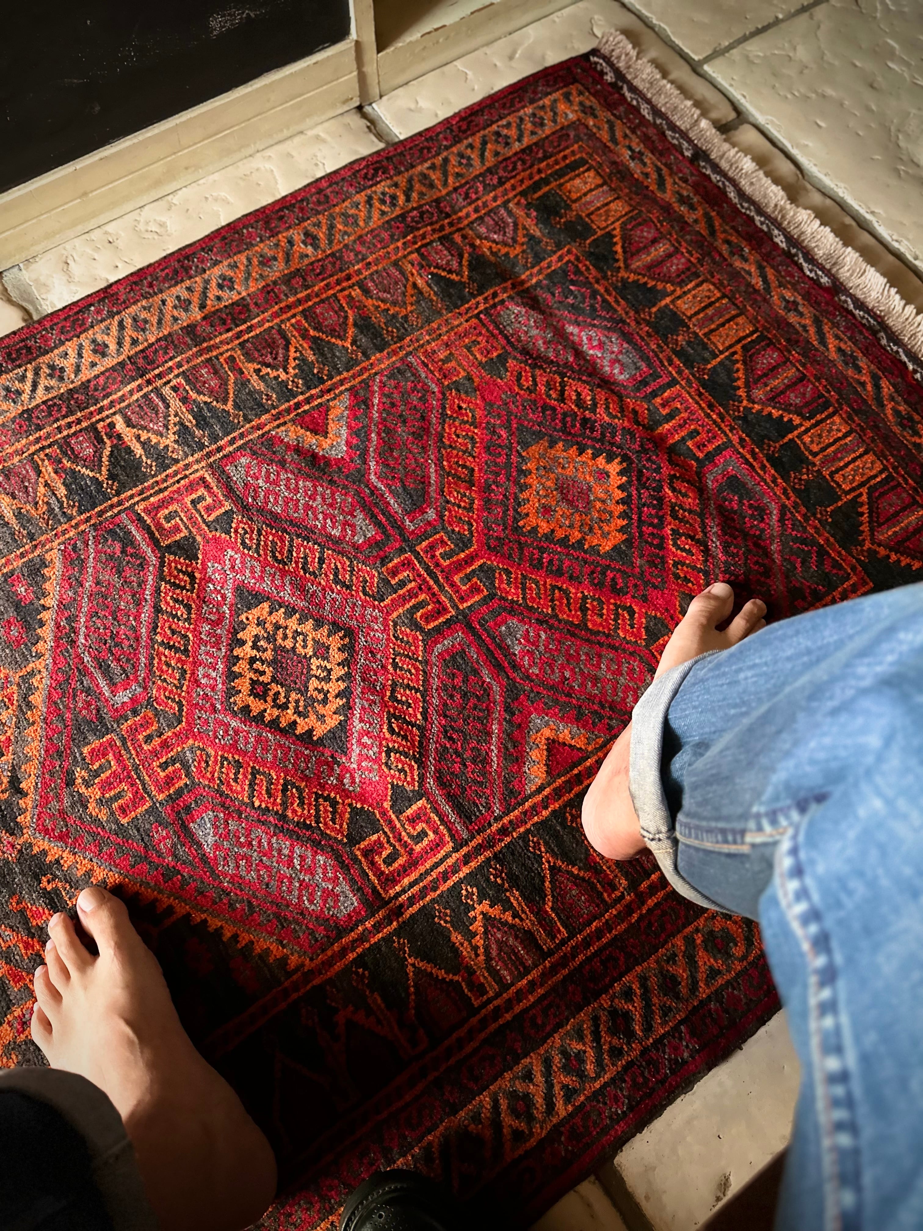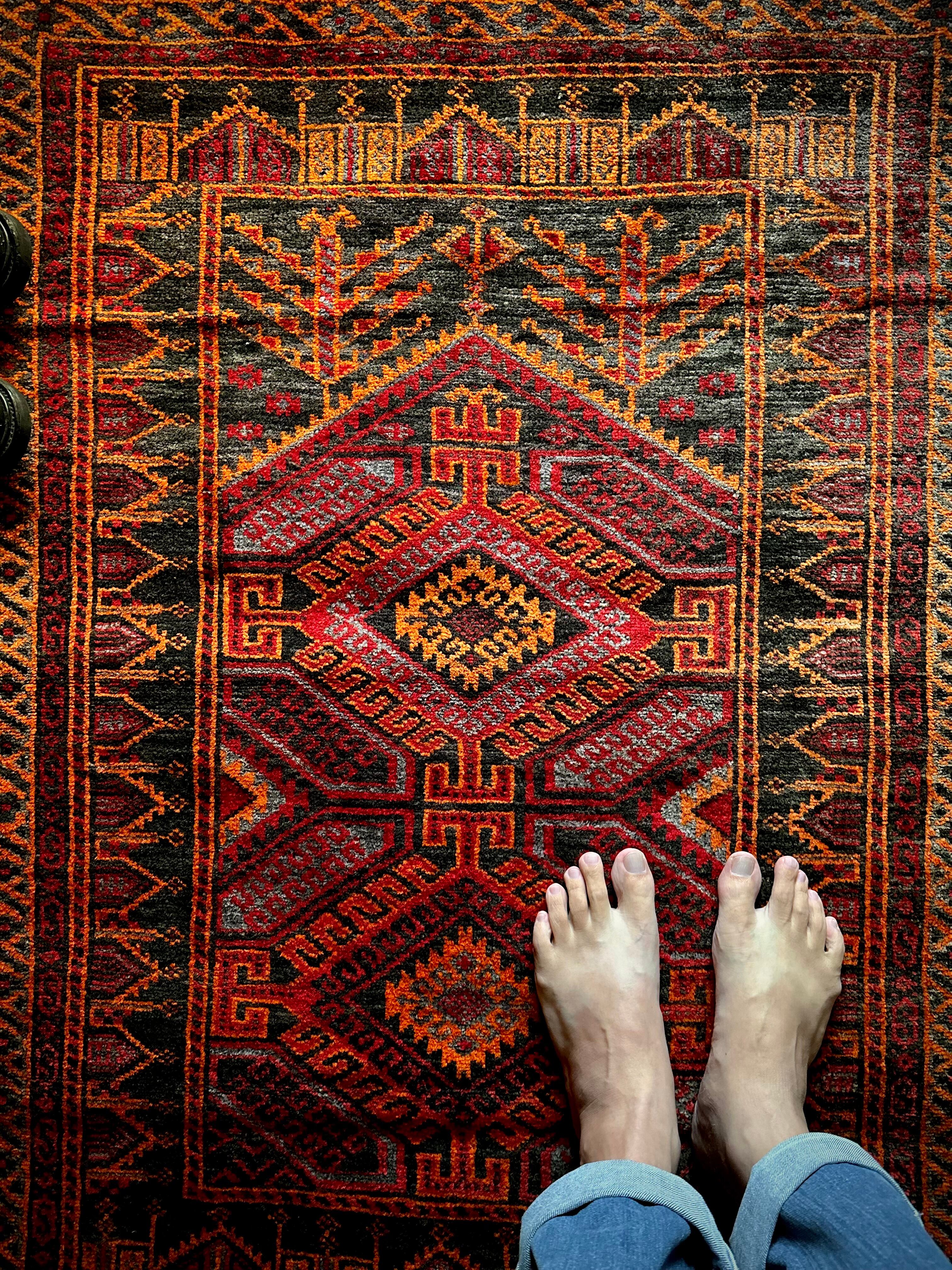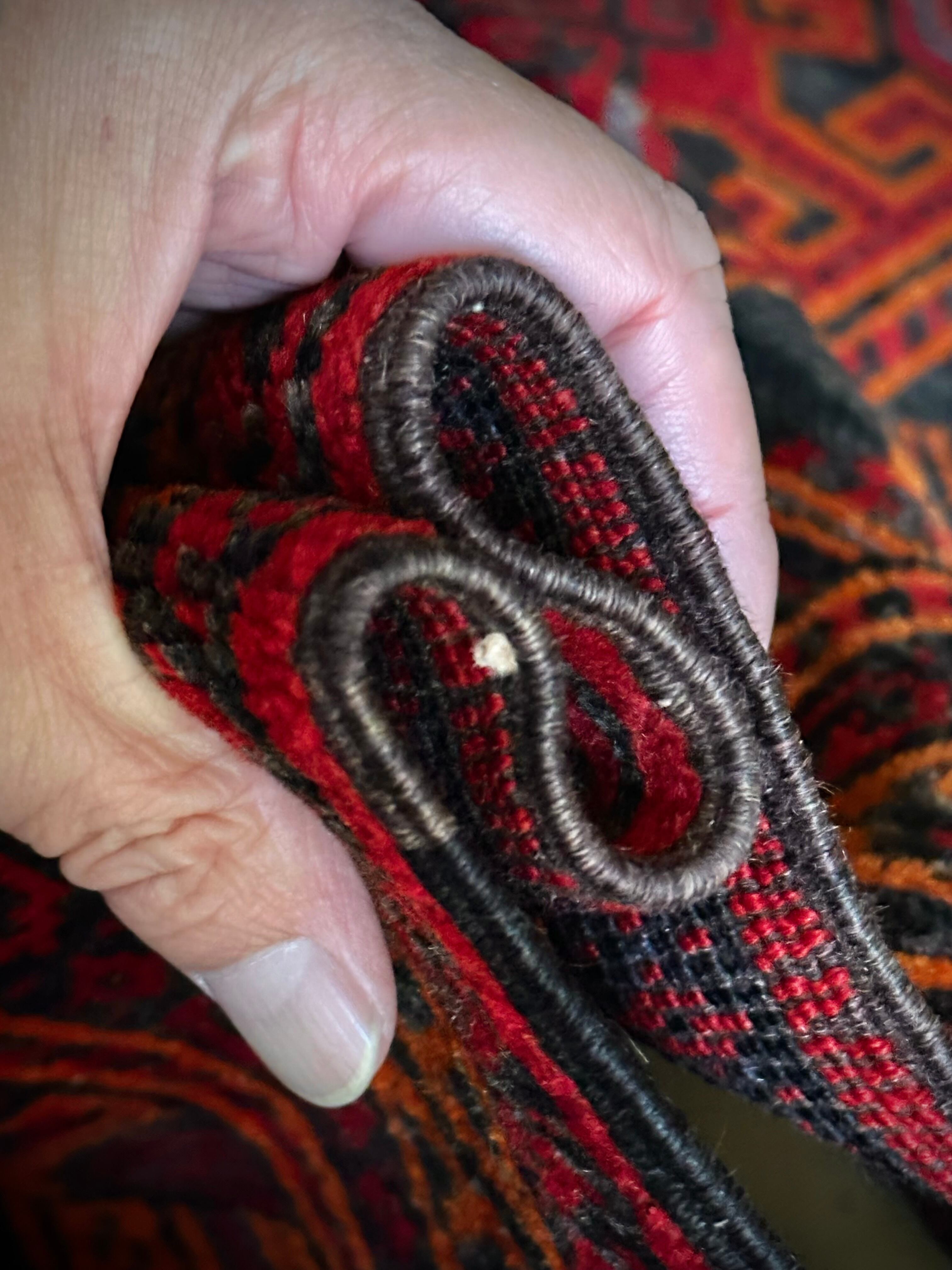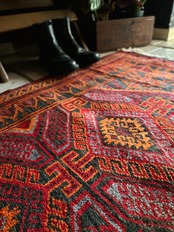 最後にラグそのものに関しては羊毛特有の匂いがあり、採寸は中央付近で計測していますが、手織りならではの歪みによる誤差や水洗いクリーニングによる縮み、また草木染めによる経年劣化の色ムラなどがありますが、それもまたヴィンテージラグの魅力かとご理解ください。