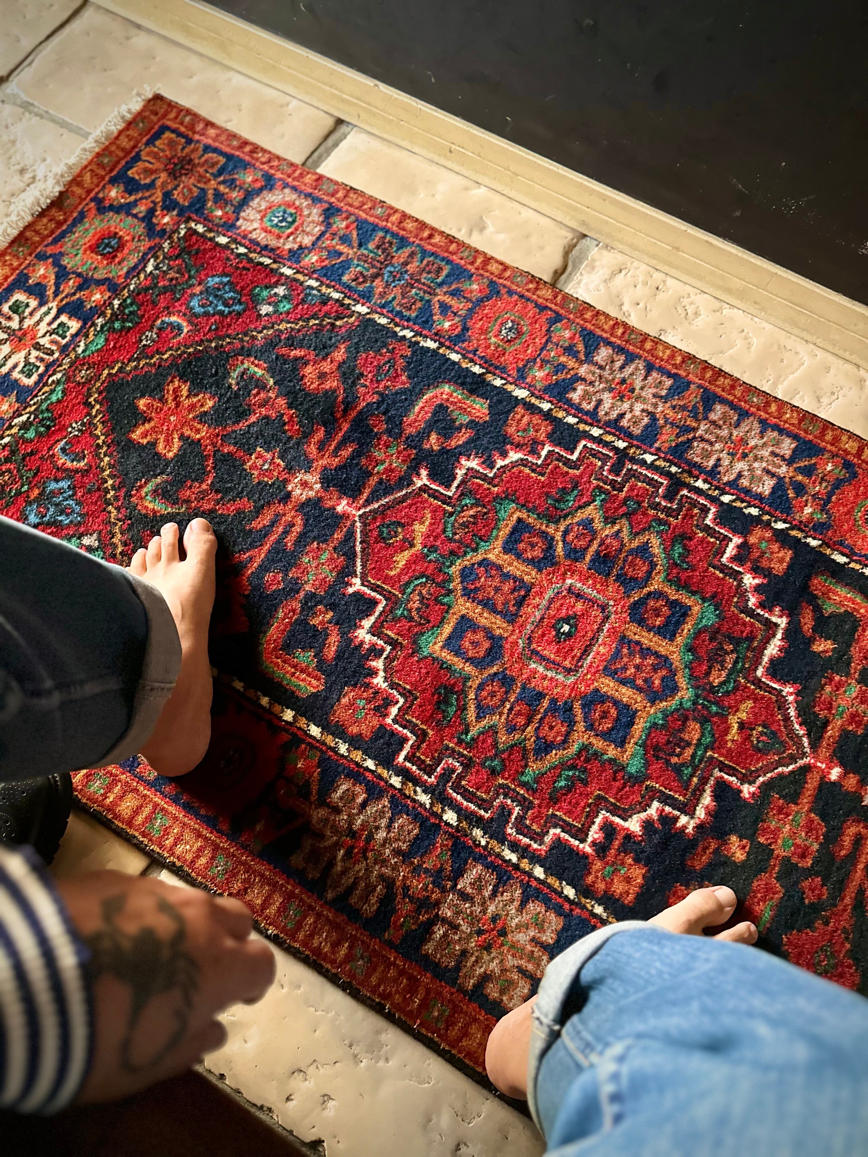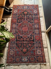 最後にラグそのものに関しては羊毛特有の匂いがあり、採寸は中央付近で計測していますが、手織りならではの歪みによる誤差や水洗いクリーニングによる縮み、また草木染めによる経年劣化の色ムラなどがありますが、それもまたヴィンテージラグの魅力かとご理解ください。