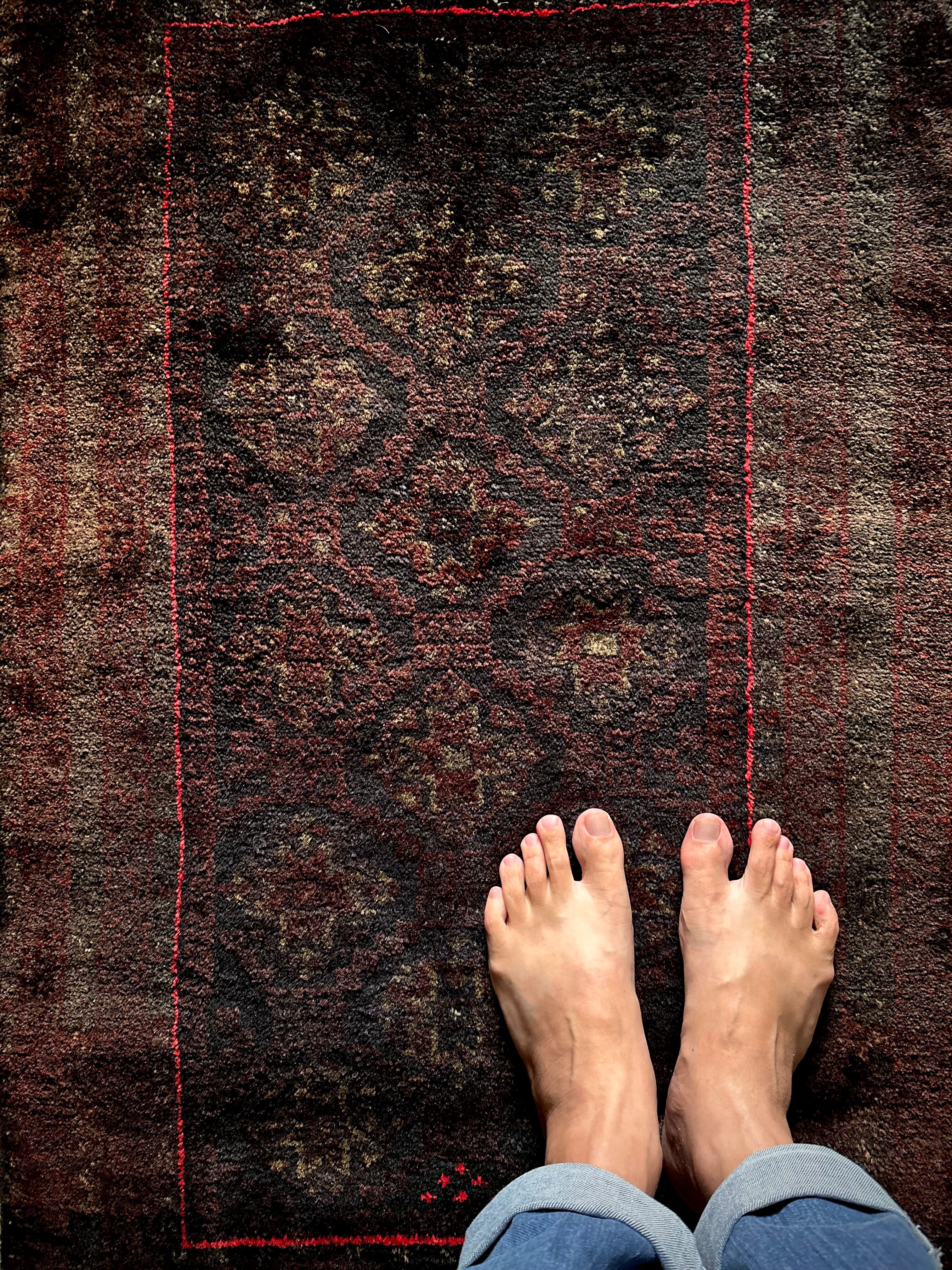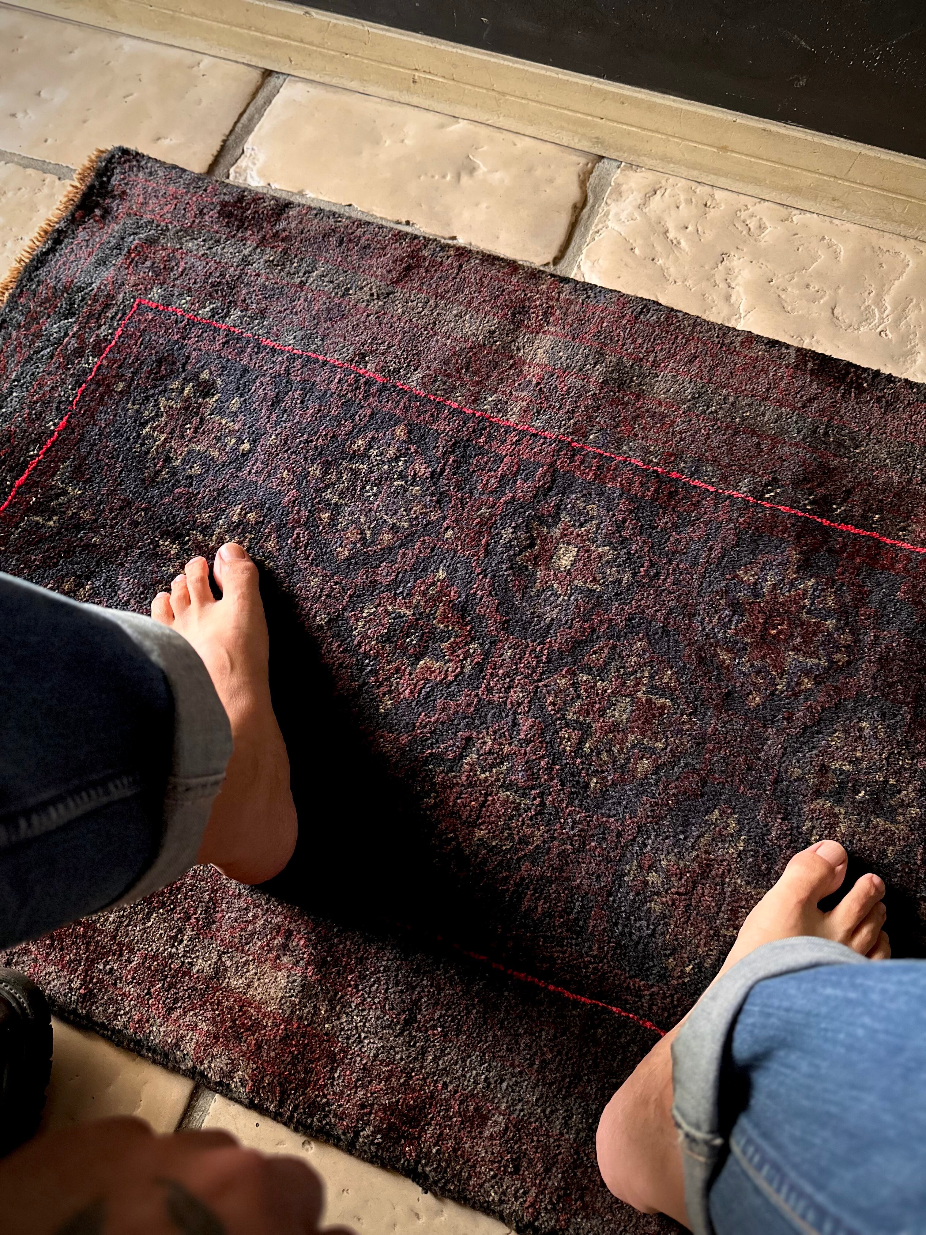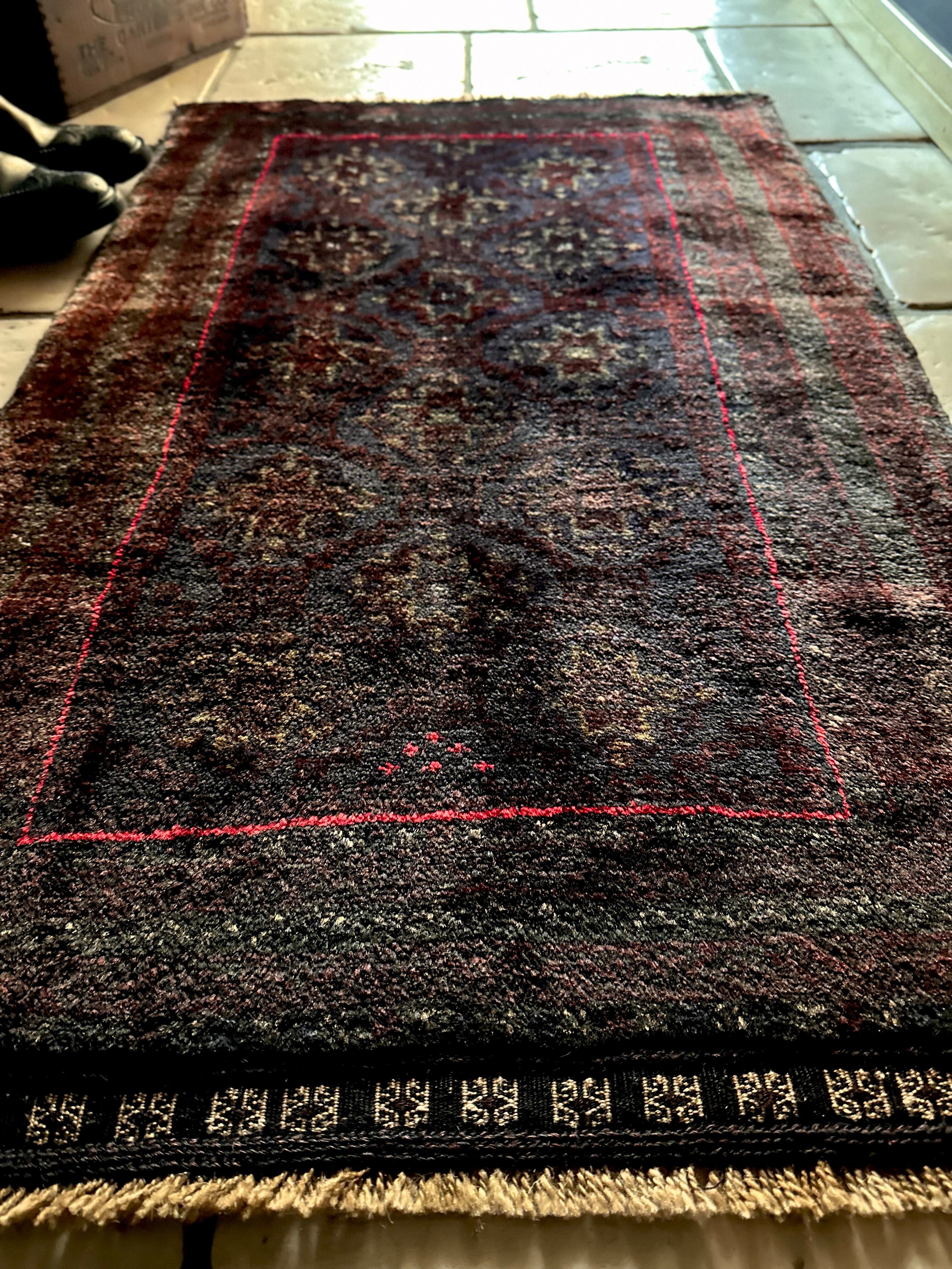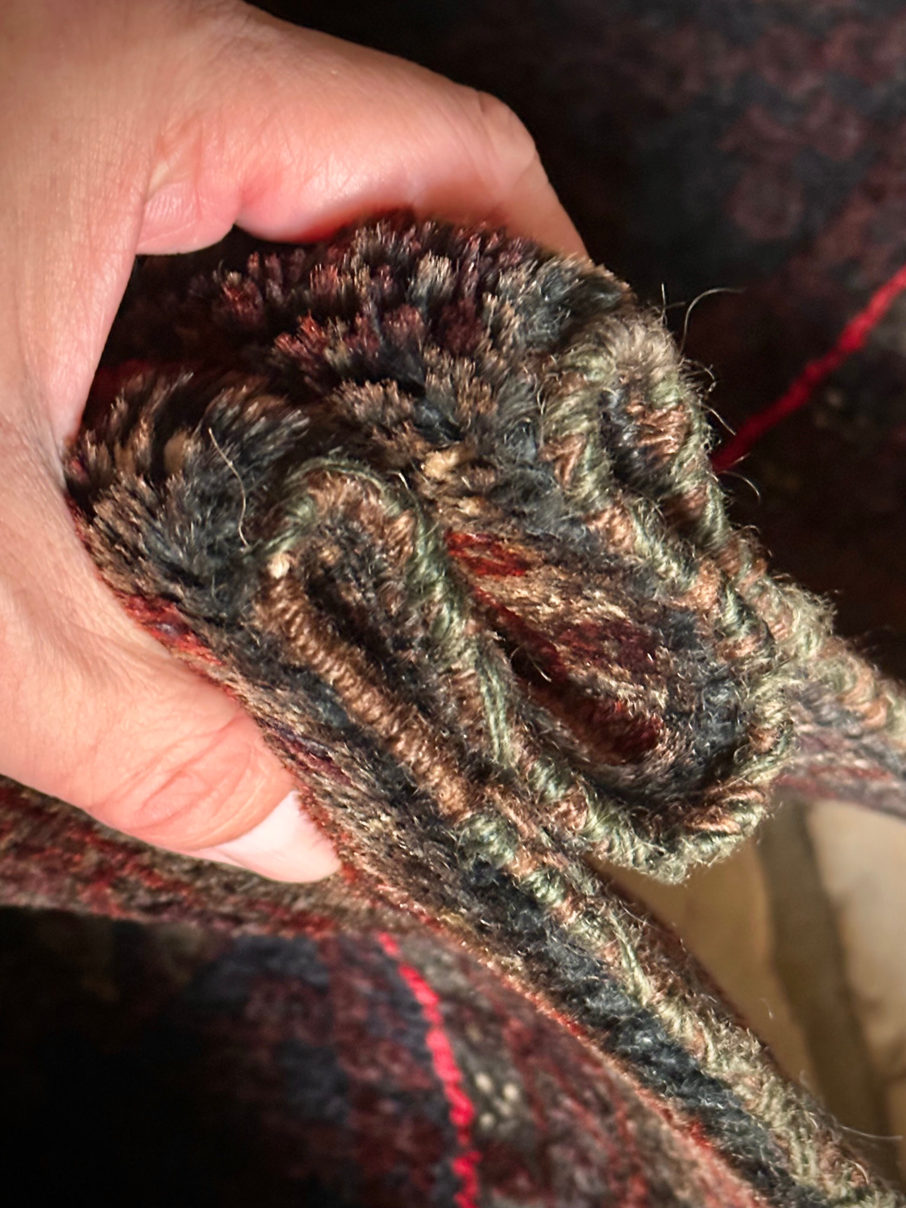 最後にラグそのものに関しては羊毛特有の匂いがあり、採寸は中央付近で計測していますが、手織りならではの歪みによる誤差や水洗いクリーニングによる縮み、また草木染めによる経年劣化の色ムラなどがありますが、それもまたヴィンテージラグの魅力かとご理解ください。