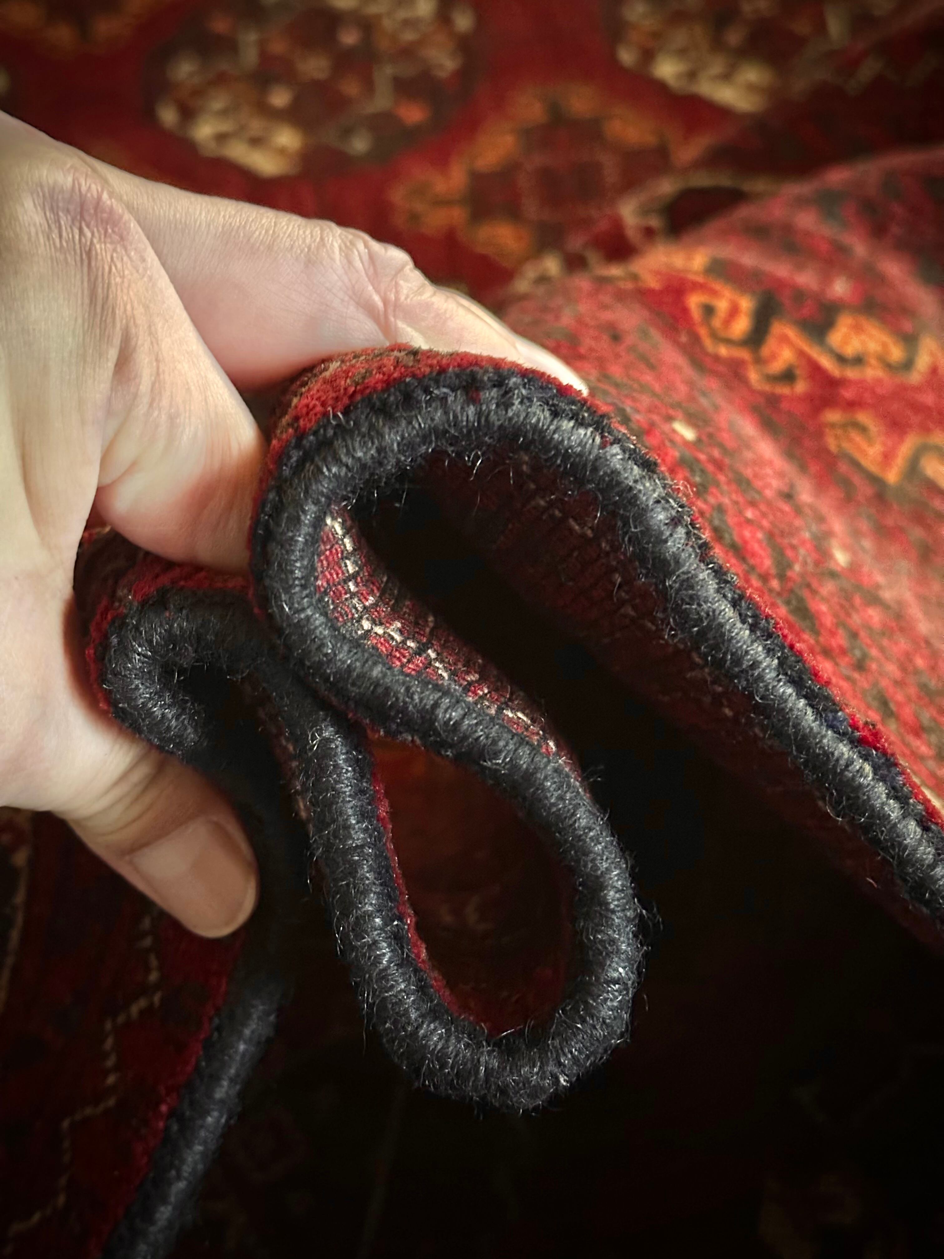 最後にラグそのものに関しては羊毛特有の匂いがあり、採寸は中央付近で計測していますが、手織りならではの歪みによる誤差や水洗いクリーニングによる縮み、また草木染めによる経年劣化の色ムラなどがありますが、それもまたヴィンテージラグの魅力かとご理解ください。