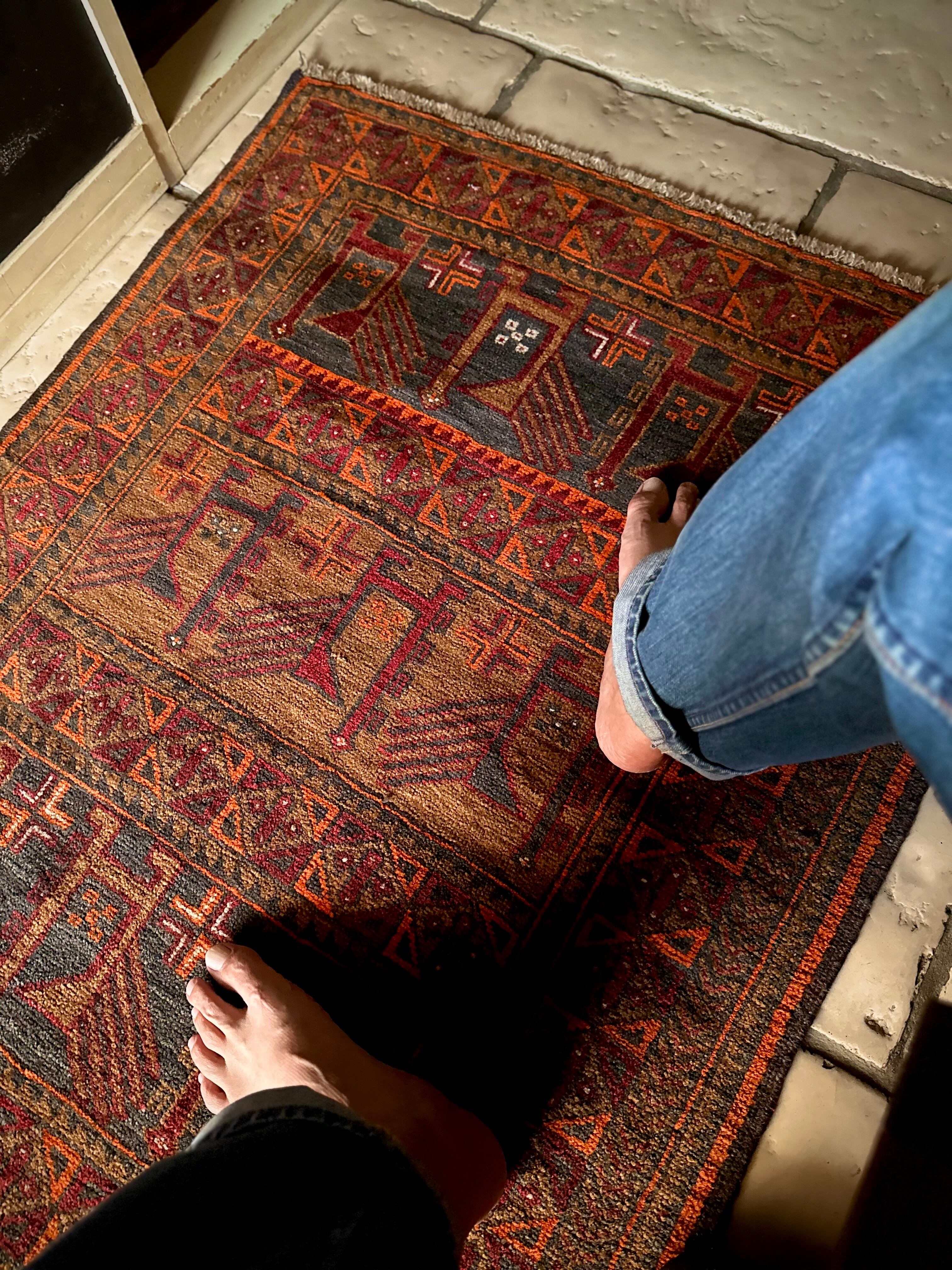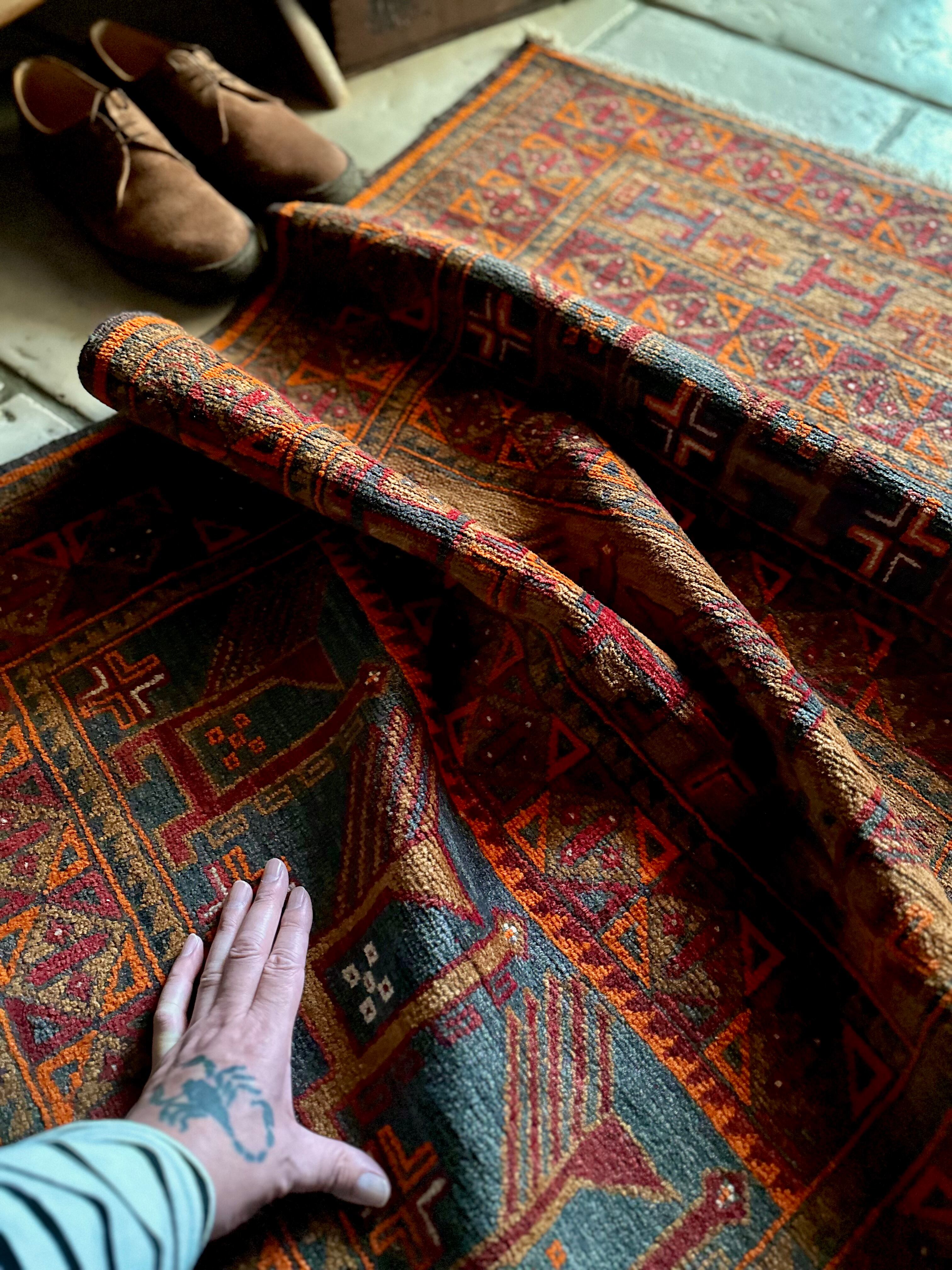 最後にラグそのものに関しては羊毛特有の匂いがあり、採寸は中央付近で計測していますが、手織りならではの歪みによる誤差や水洗いクリーニングによる縮み、また草木染めによる経年劣化の色ムラなどがありますが、それもまたヴィンテージラグの魅力かとご理解ください。