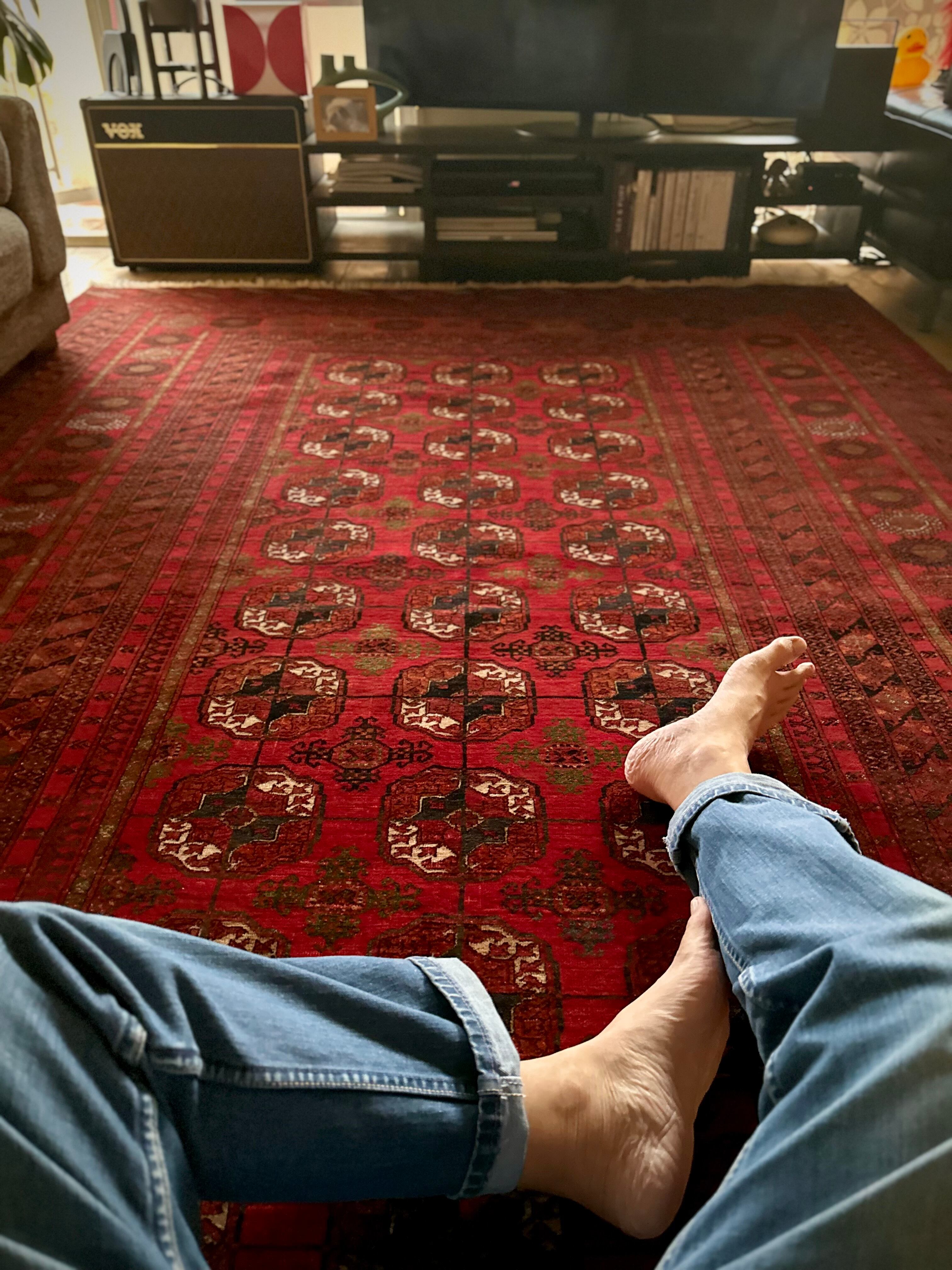 最後にラグそのものに関しては羊毛特有の匂いがあり、採寸は中央付近で計測していますが、手織りならではの歪みによる誤差や水洗いクリーニングによる縮み、また草木染めによる経年劣化の色ムラなどがありますが、それもまたヴィンテージラグの魅力かとご理解ください。