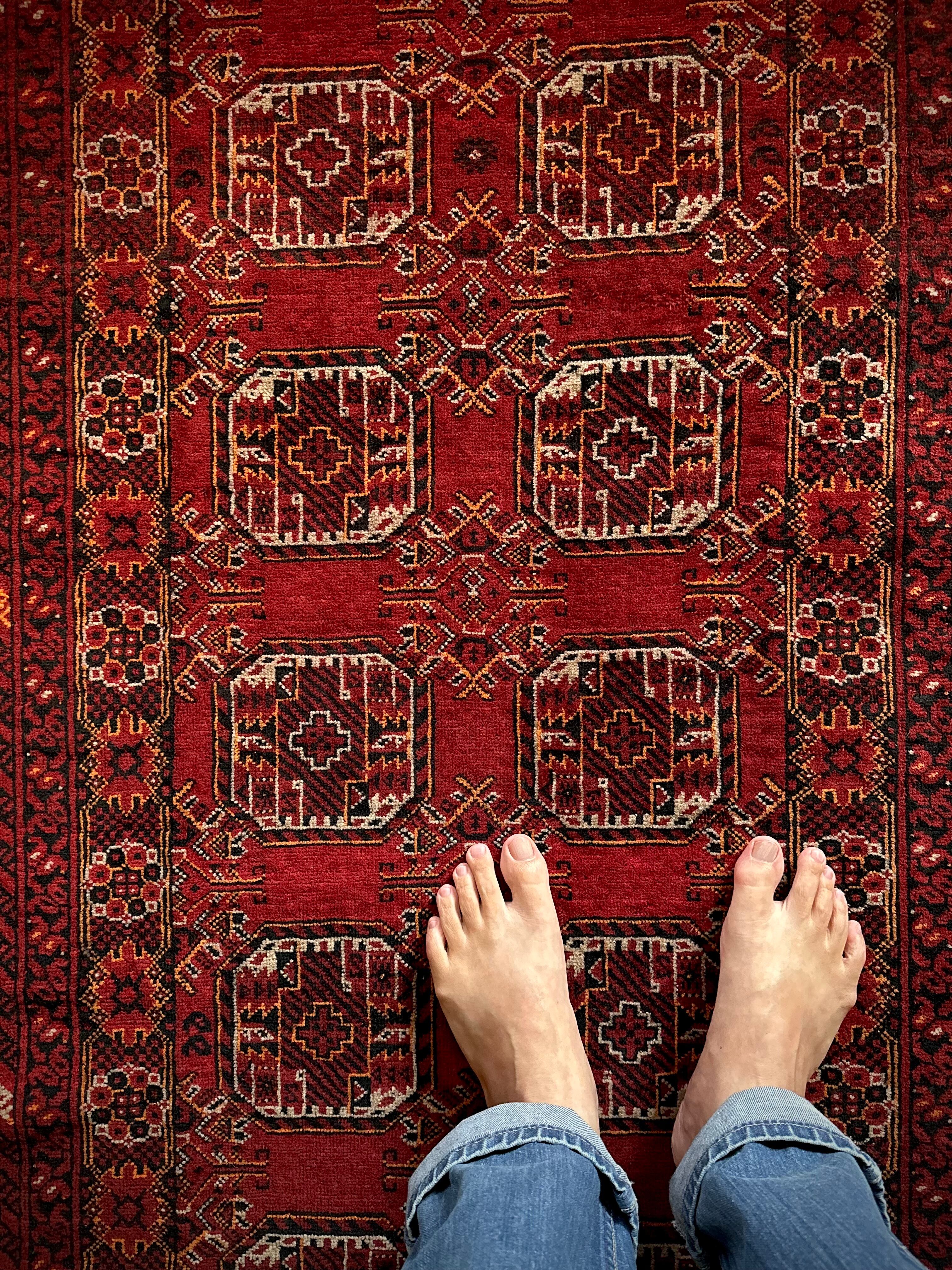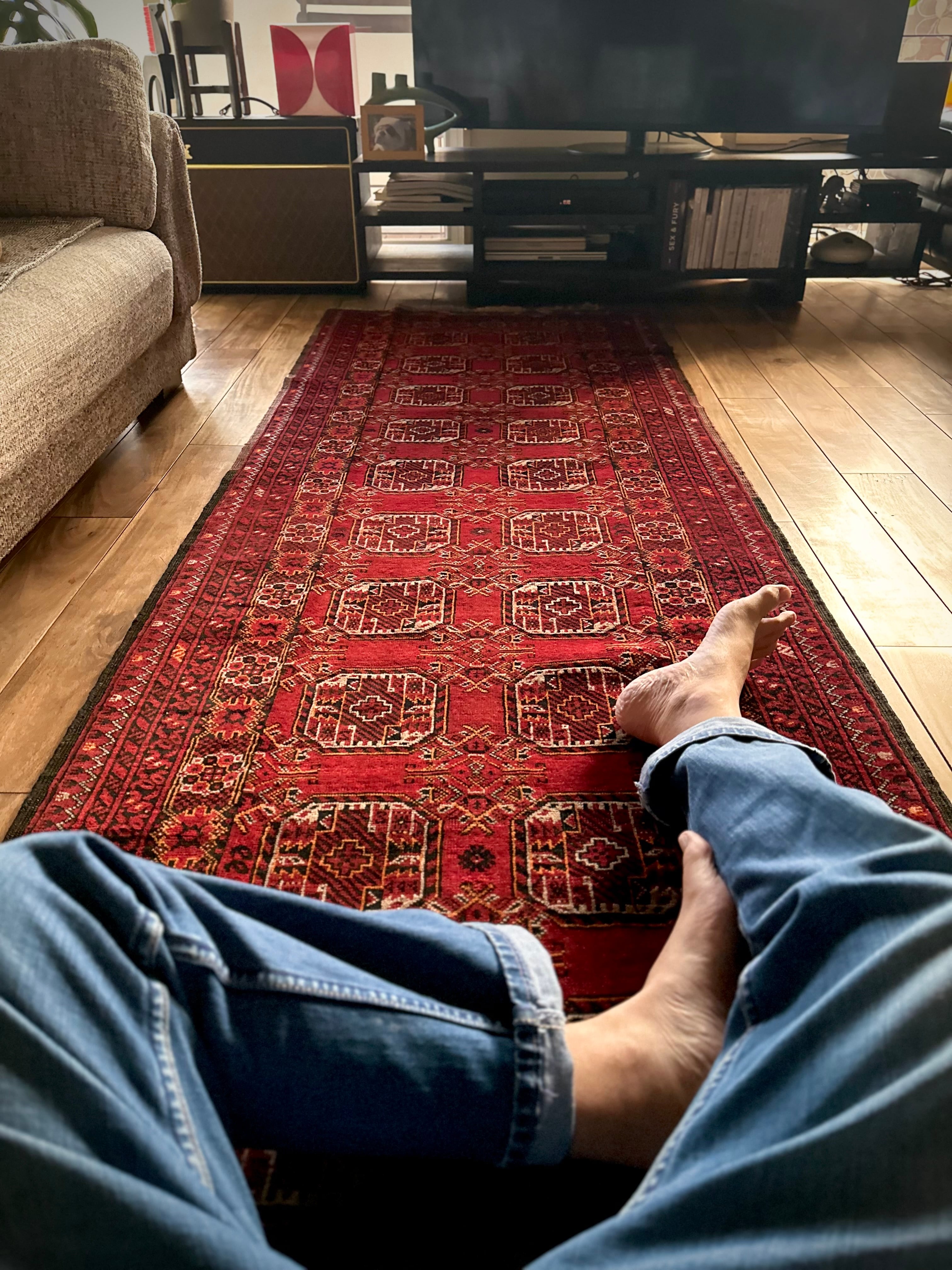 最後にラグそのものに関しては羊毛特有の匂いがあり、採寸は中央付近で計測していますが、手織りならではの歪みによる誤差や水洗いクリーニングによる縮み、また草木染めによる経年劣化の色ムラなどがありますが、それもまたヴィンテージラグの魅力かとご理解ください。